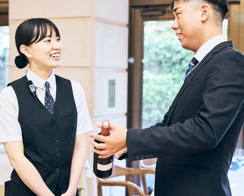 記念日やお誕生日のお客様に、メッセージ付きのデザートをサプライズでお出ししたことがありました。とても喜んでいただけて、その笑顔が忘れられない思い出になっています。お客様の大切なひとときに寄り添える瞬間があるからこそ、この仕事にやりがいを感じます。日々の業務の中で、こうした特別な経験ができるのは本当に嬉しいです。